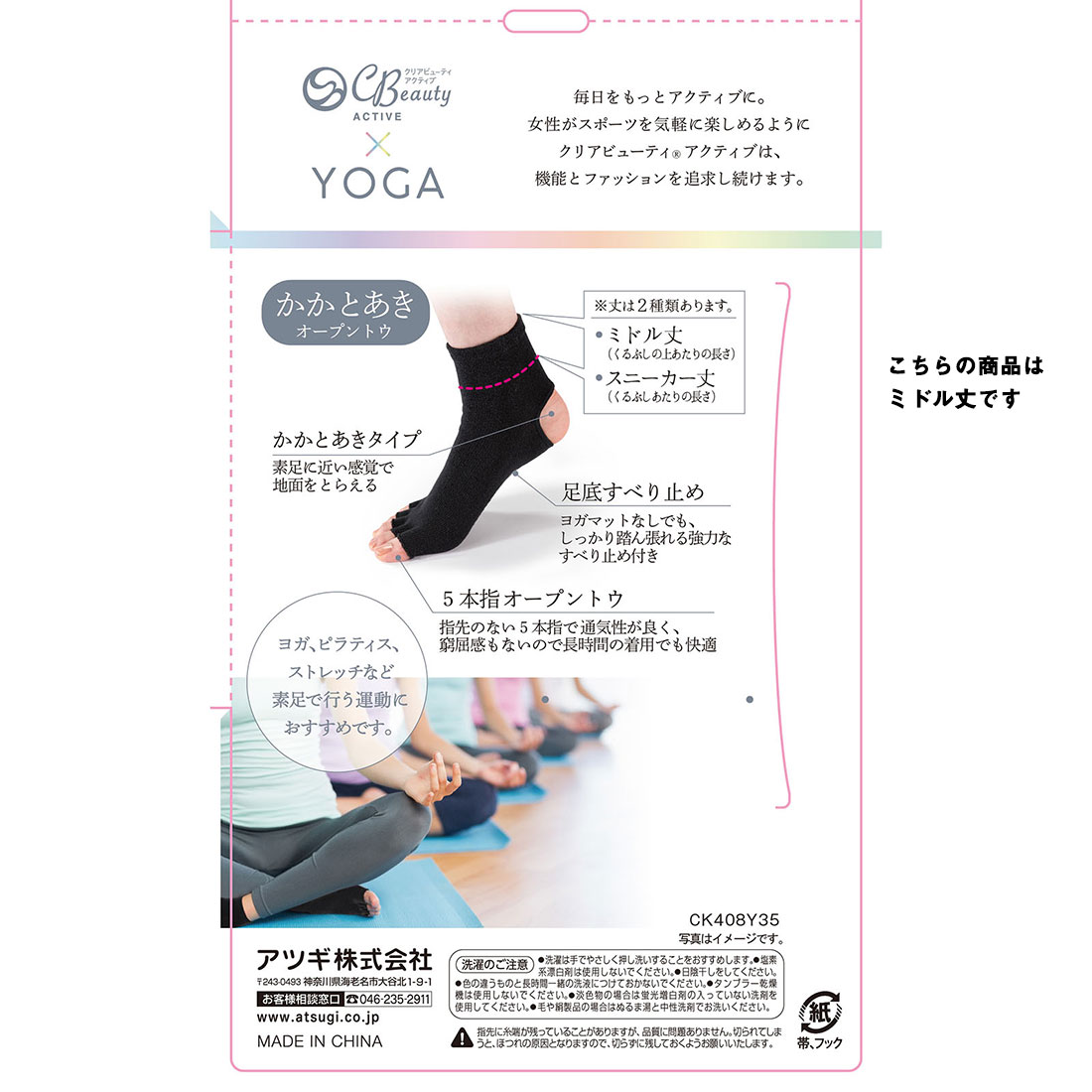 【ヨガ・ピラティスに最適】かかとあき ソックス 指先なし 足裏すべり止め 23-25cm ミドル丈 全4色 レディース アツギ クリアビューティ アクティブ
