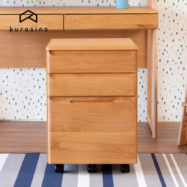 幅42 ワゴン デスクワゴン サイドワゴン 完成品 スリム キャスター付き 袖机 チェスト サイドチェスト 木製 無垢 引き出し 3段 書類 プリント 文具 収納 ランドセル置き 基本送料無料 SANTAFE ISSEIKI 101-02746