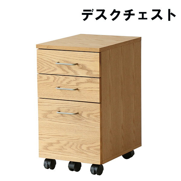 デスク サイドワゴン 天然木 3段 サイドチェスト チェスト オフィスワゴン キャスター付きチェスト 【Drip Desk chest ドリップ デスク チェスト DRK-3458NA】