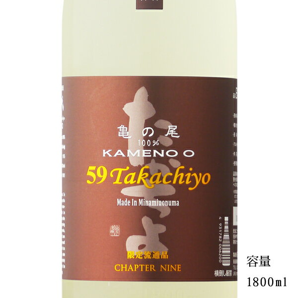 59Takachiyo 亀の尾 純米吟醸無調整生原酒 1800ml 【日本酒/新潟県/高千代酒造】【要冷蔵商品】