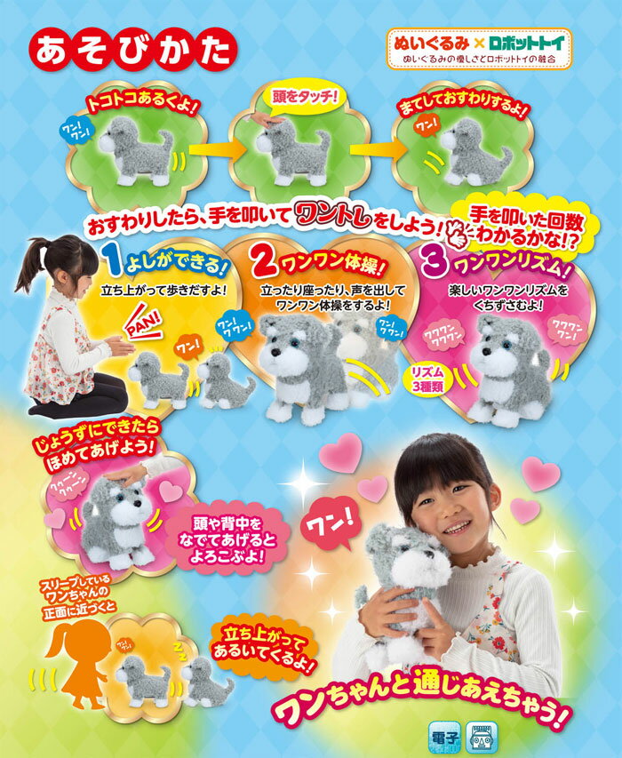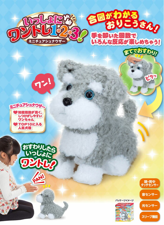 本商品は、通常1〜2営業日以内に発送(営業日6時までのご注文分)お支払い方法・送料についていっしょにワントレ1・2・3! ミニチュアシュナウザー 電動ぬいぐるみ 【犬 イヌ いぬ しつけ遊び おままごと 動く 動物 知育玩具 イワヤ】いっしょにワントレ1・2・3! ミニチュアシュナウザー 電動ぬいぐるみ 【犬 イヌ いぬ しつけ遊び おままごと 動く 動物 知育玩具 イワヤ】合図がわかるおりこうさん!トコトコ歩いているワンちゃんにマテ!をして座ったら「ワンワントレーニング」のはじまりです!手をたたいた回数に反応してアクションが変わります。