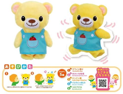 (1)マフィン売り(2)ゆかいな牧場(3)ロンドン橋(4)イエヴァン・ポルカ(5)コロブチカ■くまさん本体サイズ:(約)W130×H190×D90mm■パッケージサイズ:(約)W140×H230×D120mm■対象年齢: 1.5才以上■使用電池:単4×3本(別売)■メーカー:イワヤ