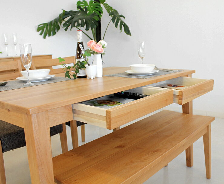 ダイニングセット 120cmダイニング4点セット 4人掛け ベンチ アルダー無垢 引出し付テーブル ナチュラル 北欧スタイル ダイニングテーブルセット 北欧 テーブル 木製 カフェ風