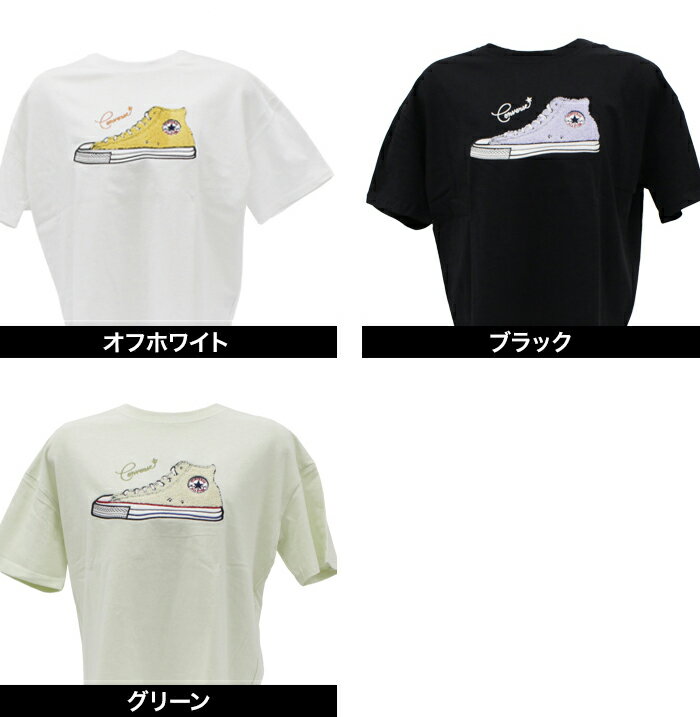 CONVERSEコンバースTシャツ半袖靴刺繍Tシャツカラー展開 オフホワイト、グリーン、ブラック サイズ M M 身長の目安 154〜162 バストの目安 79〜87