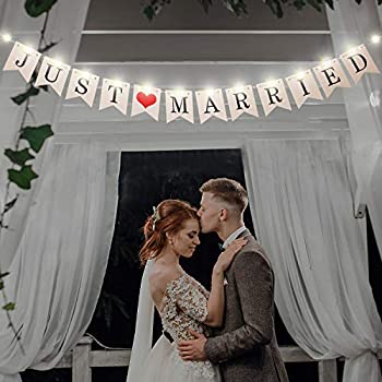 【中古】【輸入品・未使用未開封】Just Married バナー ウェディングバンティングバナー 8つのちらつきモード LED フェアリーストリングライト 吊り下げサイン ガーランド ペナン