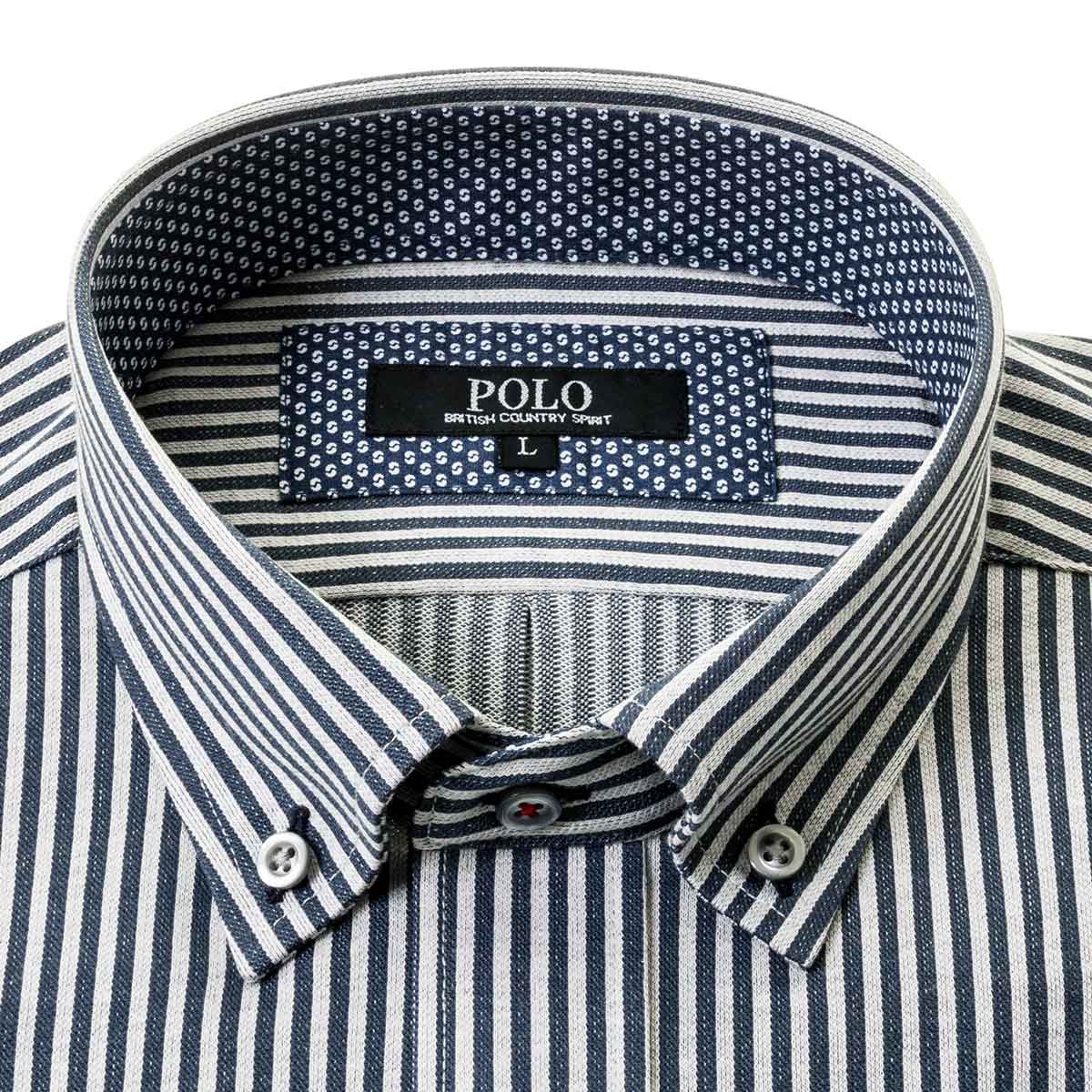 メーカー希望小売り価格:4,290円(消費税 10%込み) メーカー希望小売価格はメーカーサイトに基づいて掲載しています POLO BCS 長袖ワイシャツ ショートカラー ボタンダウン ニットシャツ 【※裄詰め対応不可商品】 メンズ ワイシャツ ビジカジ ストレッチ イージーケア ネイビー ストライプビジネスシーンで新風を巻き起こす、カジュアルテイストのドレスシャツです。