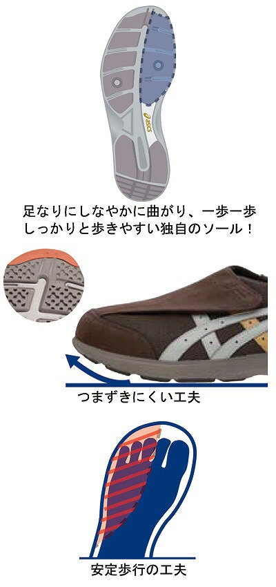 ・足なりにしなやかに曲がり、一歩一歩しっかりと歩きやすい独自のソール! ・つまずきにくい工夫。