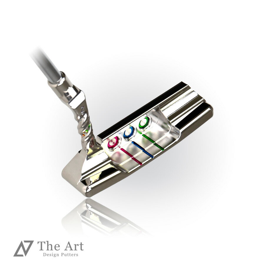 ワンランク上のカスタムになるツイストネック、アドレス時に役立つ3本フランジライン、最後にシャインメッキでコーティングを施し、高級感のあるパターになりました。