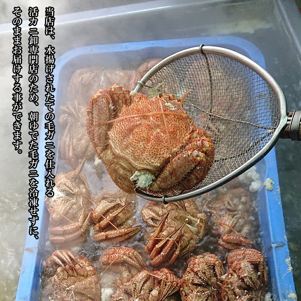 提供元 三吉丸かに直売店 お礼品の特徴 当店は水揚げされたての毛ガニを仕入れる活カニ卸専門店のため、 朝ゆでた毛ガニを冷凍せずに、そのままお届けする事ができます。